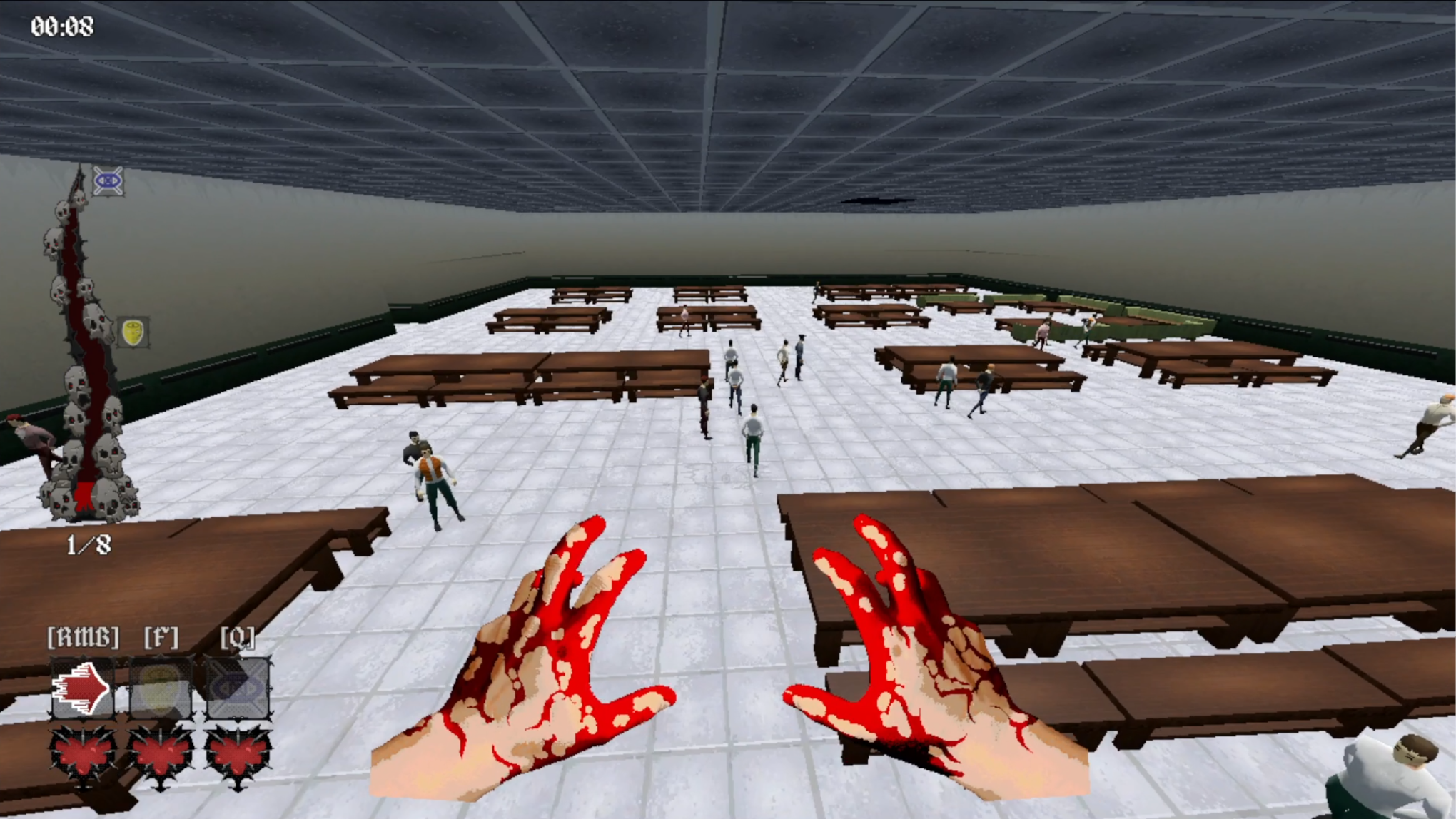 In a small town hospital, crowds gather to donate blood as part of their annual Halloween tradition. But this year, you are also there, lurking in the shadows, collecting your own share of blood. Alone you are weak, but with enough souls to join your horde of thralls, you hope to quench your insatiable thirst, you hope to quench... your vicious Blood Drive...